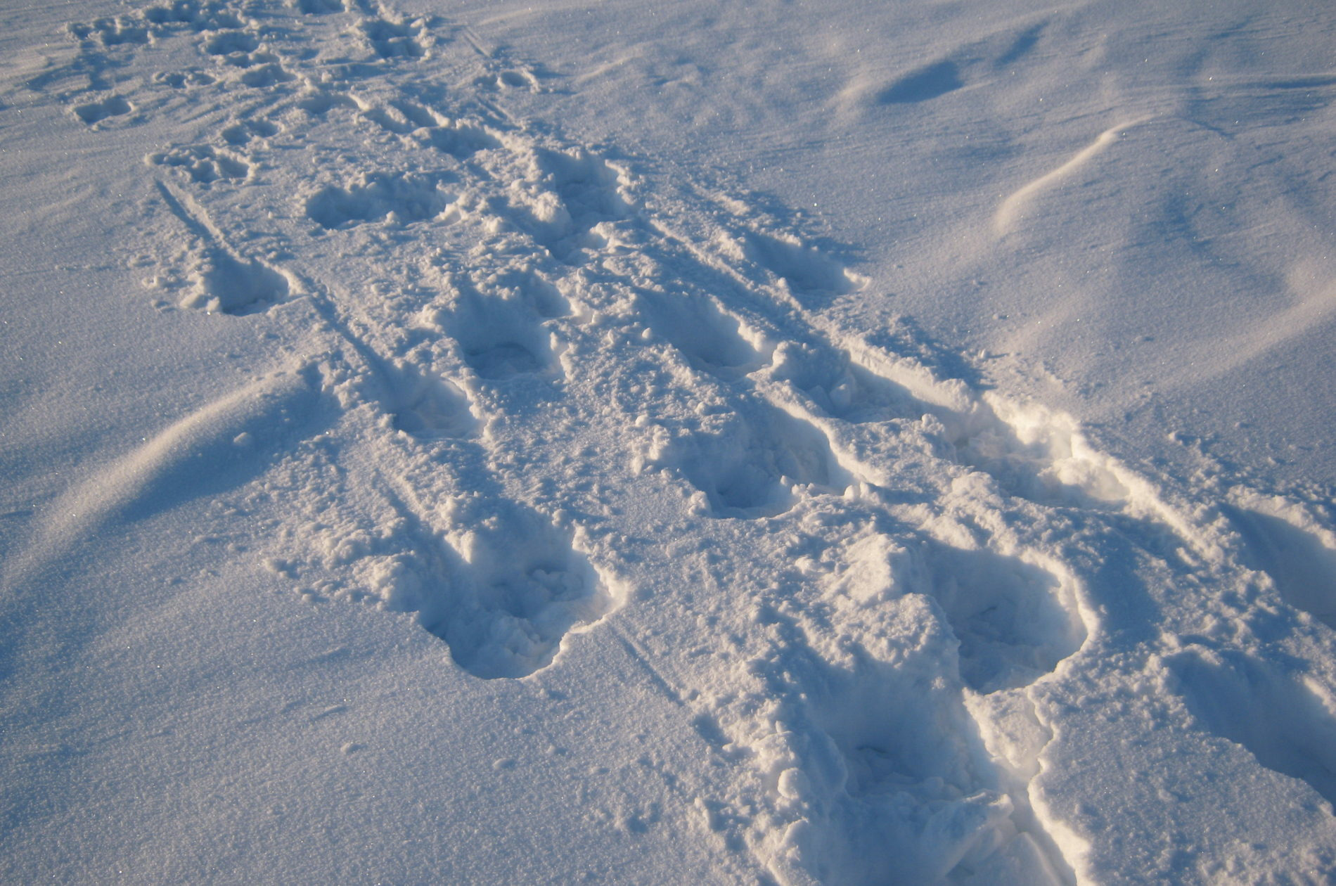 Следы лося отмечены только в северной части парка, на р.Кожим. В средней и северной части парка в этом году отмечены следы рыси, причем нескольких особей (правда, пересечение маршрута отмечено только однажды). Так, множество следов самки с двумя котятами были отмечены в районе базы Санавож, причем, по свидетельству очевидцев, рысь видели в этом районе и летом. Следы рыси отмечены также на р.Манарага и Ломесь-вож, вблизи водораздела. Прежде лесная кошка в учетах не попадалась и в список видов, обитающих в парке, не включалась.