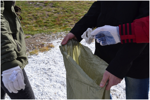 На следующий совместно с работниками парка все отправилась на стоянку Б.Балбанты. Целей было 2 – экологическая и просветительская. Все дружно навели порядок, затем сотрудники парка рассказали об озере, о горах Старик и Старуха, о красавице Алькесь, в честь которой назван снежник на хребте Алькесвож и многом другом.