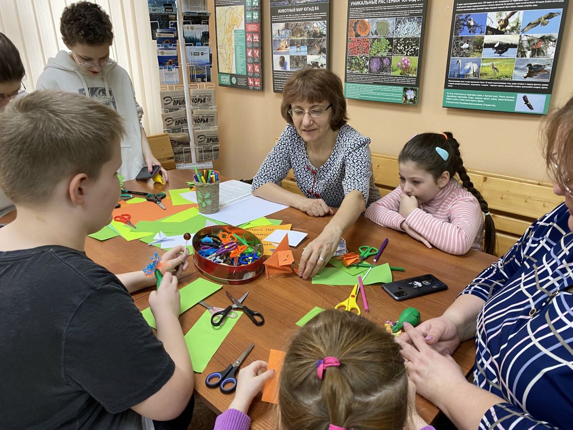 В фойе гостей уже ждали две площадки с мастер-классами подготовленные нашими партнерами. Всем желающим предлагали смастерить экологическую игрушку «Травянчик» и красочные подделки в виде животных из бросового материала и в технике «оригами».