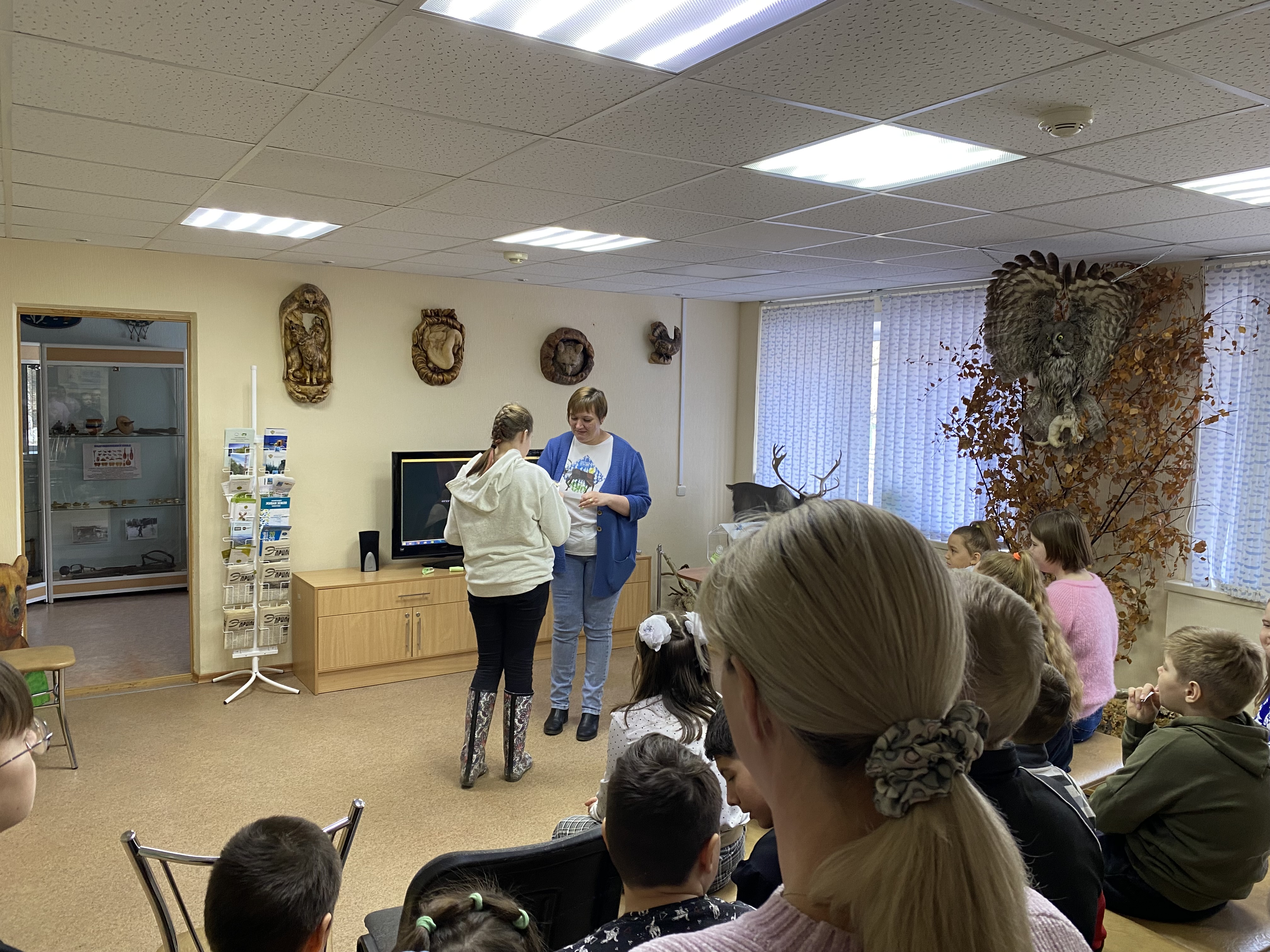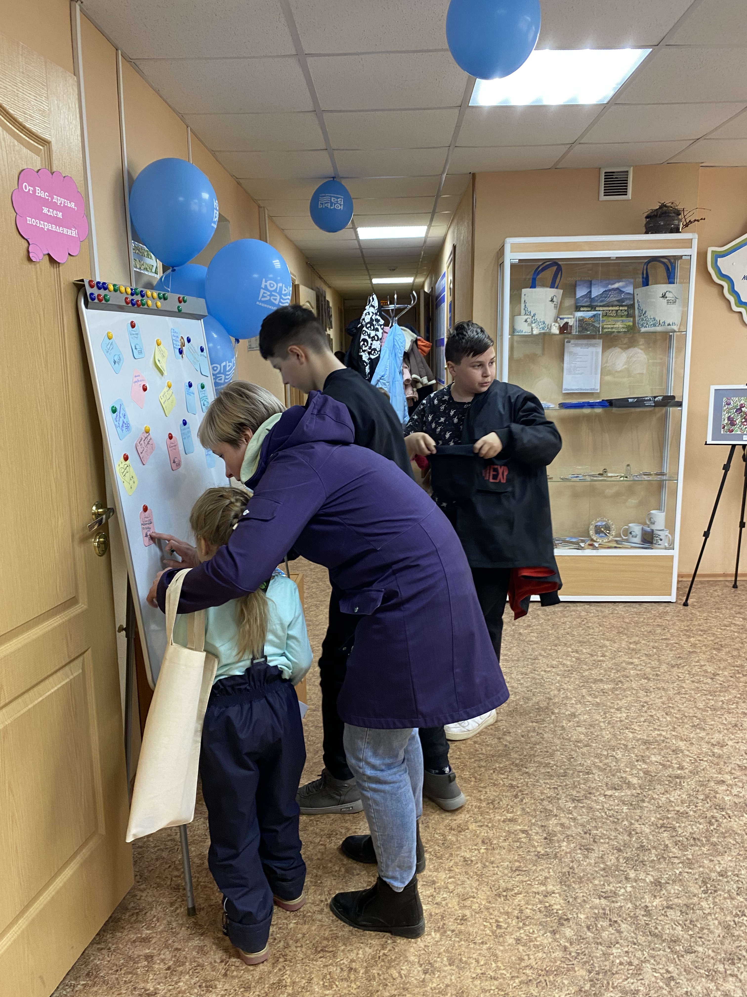 Программа мероприятий Дня открытых дверей была разнообразной и насыщенной, каждый смог найти себе занятие по вкусу. Уже в фойе гости могли ощутить праздничную атмосферу. Здесь была организована выставка картин учеников детской художественной школы г. Вуктыла, а также был оформлен стенд, где все желающие могли оставить свои поздравления и пожелания национальному парку.