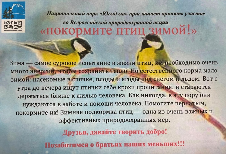 15 января в нашей стране отмечается добрый экологический праздник – День зимующих птиц. В этот день сотрудники национального парка «Югыд ва» напомнили вуктыльцам о том, как важно подкармливать птиц зимой.