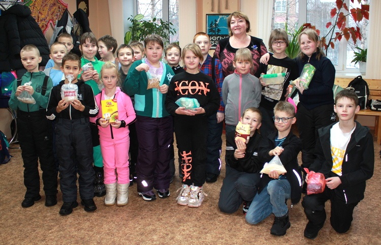 Для поддержки зимующих на территории муниципального округа птиц школьники принесли крупы и семечки. При содействии сотрудников парка вспомнили о том, чем и каких птичек можно подкармливать и приступили к изготовлению экологических кормушек из заготовок картона, мучного клейстера, круп и сушенных фруктов. Детвора увлечённо делала кормушки, некоторые были с одной стороны наполнены крупой, а с другой семечками и мелко рубленными сушенными фруктами.