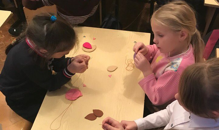На творческой части урока дети сшили птиц из фетра и сделали съедобные кормушки. Всем пернатым друзьям ребята дали имена. Кормушки для птиц, сделанные своими руками, доставили огромное удовольствие. Это и хорошая традиция, приучающая ребенка заботиться о братьях наших меньших, и замечательное творческое занятие.