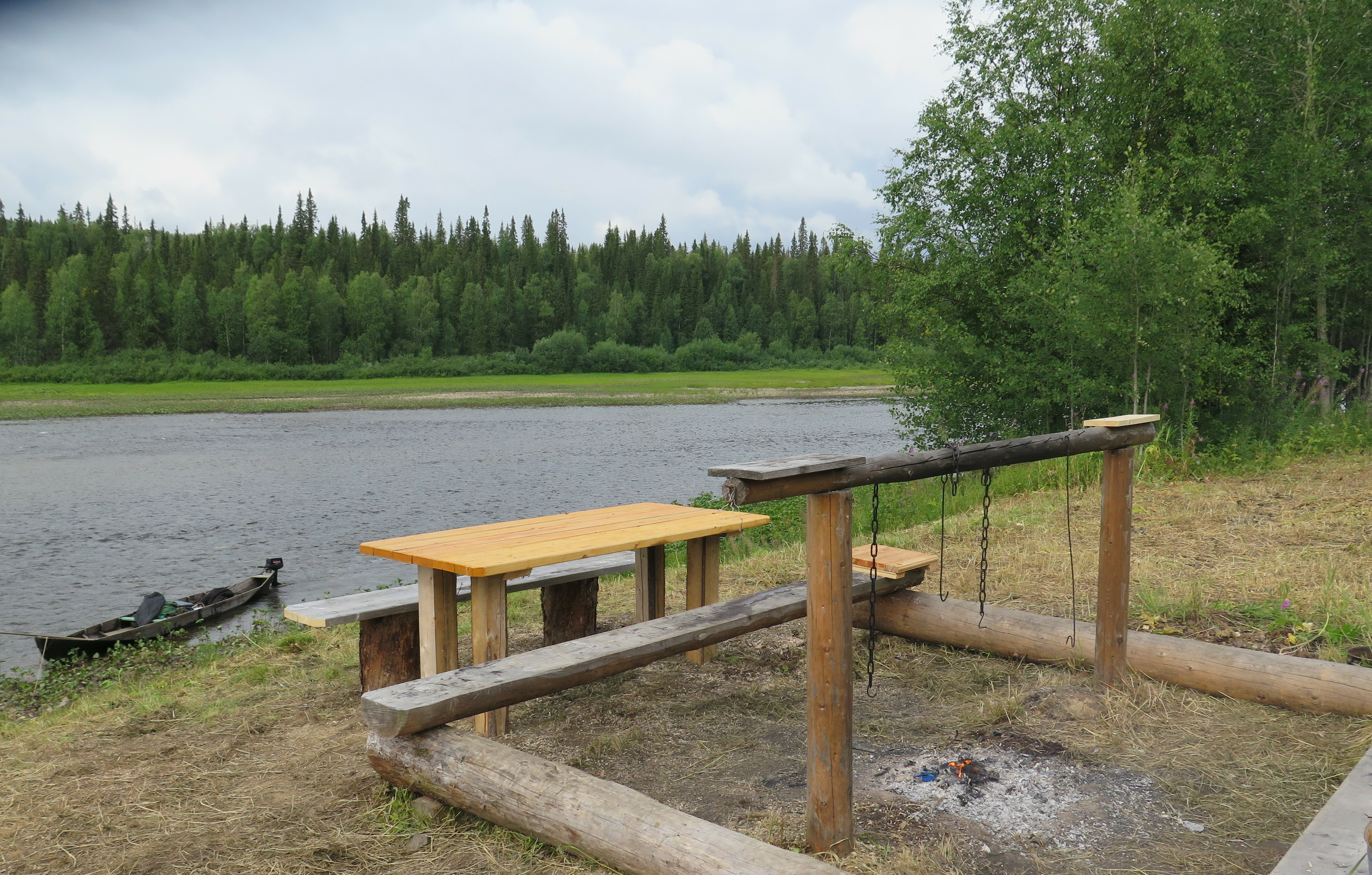 Наши мастера завершили работы на новой стоянке Залаздибэж, что в переводе с языка коми «высокое место в конце острова». Здесь есть все, что нужно туристу-походнику: дом, где можно отдохнуть, баня, в которой можно погреться и вымыться, кострище, на котором можно готовить еду. Ещё кострище – это место, где можно насладиться прекрасными видами и пообщаться с друзьями после долгого и насыщенного дня.