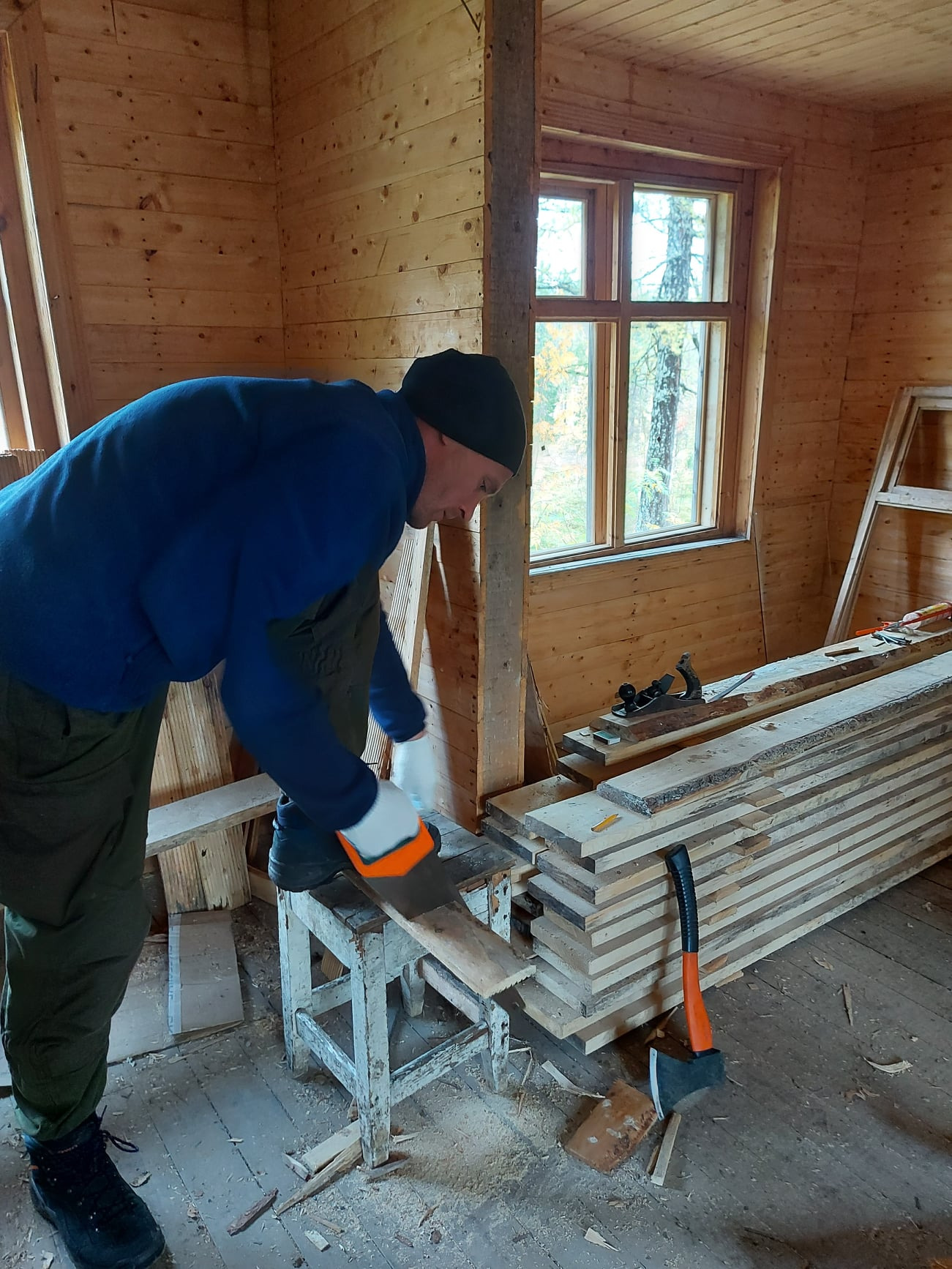 Дружная команда инспекторов под началом руководителя Печорского филиала парка Вячеслава Скворцова за две недели привела в жилой вид недостроенный дом на базе (к слову – 30 (тридцать!) лет дожидавшийся этого часа), а также заготовила дрова для будущего туристского сезона.