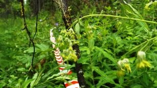 Во время прохождения 5-ти километрового маршрута от реки до вершины горы школьники визуально знакомились с лесными и болотными растениями из Красной книги РК.