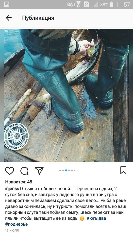 Одним из поводов для возбуждения уголовного дела стала публикация в социальной сети «Инстаграмм». Фото с хэштегом #югыдва #подчерем и описанием «рыба в реке давно закончилась, ну и туристы помогали всегда, но ваш покорный слуга таки поймал семгу…» не могло остаться без внимания сотрудников отдела охраны национального парка. Выяснилось, что фото разместил молодой человек, посетивший национальный парк в августе вместе со своим дедом. По данному факту был собран пакет документов, направленный в отделение полиции для возбуждения дела по ст. 256 ч.1 УК РФ. В результате следственных мероприятий вину за внука-хвастунишку взял на себя дед. Самое интересное что, при оформлении разрешений каждый посетитель знакомится и подписывается под правилами пребывания на территории парка. Но не все соблюдают их, находясь на самой территории, как и не думают о последствиях своих действий.