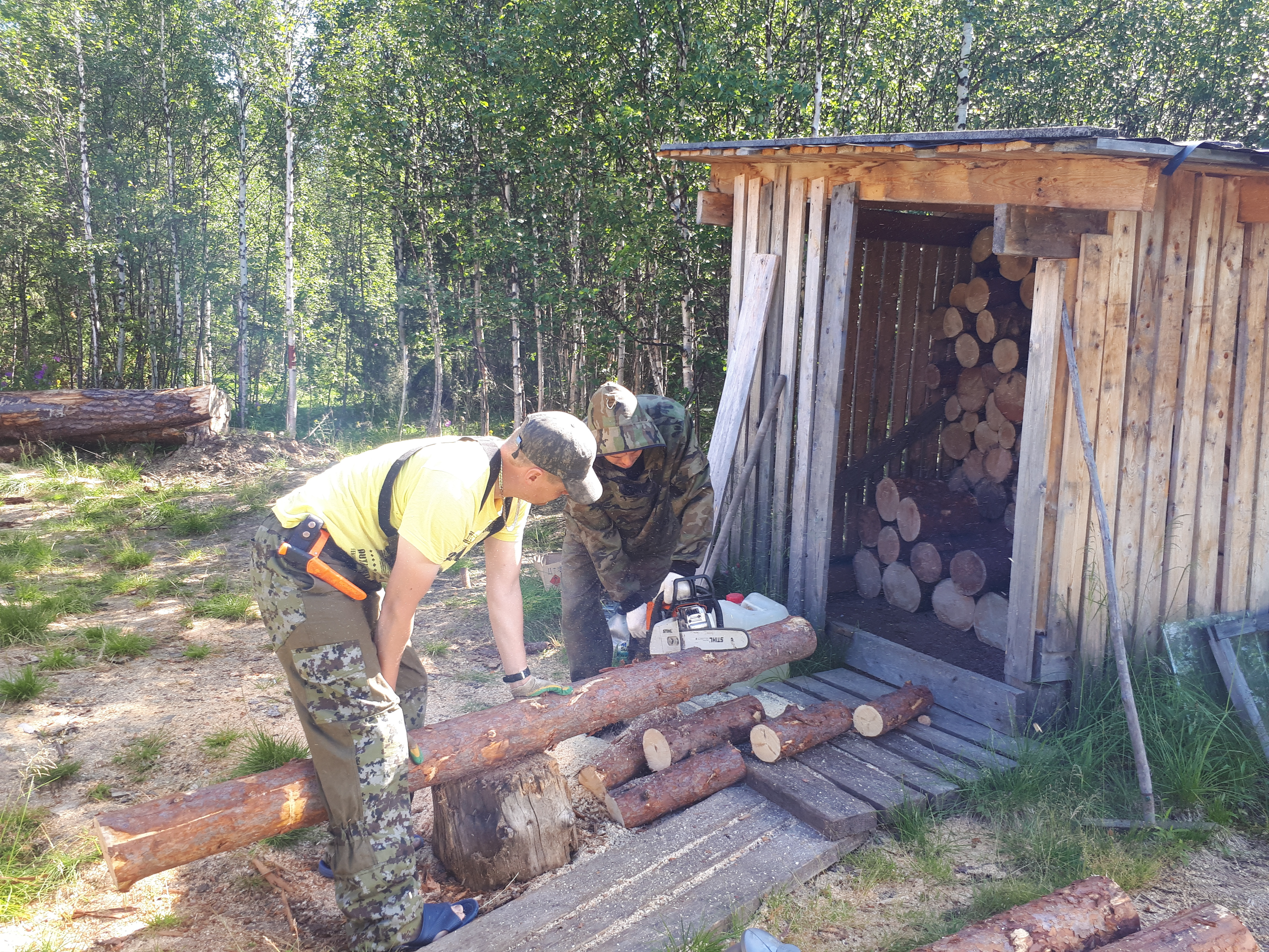 В период с 17 по 22 июля волонтерами выполнено немало работ по обустройству стоянки: покраска стен вагон-домика, ремонтные работы в бане, изготовление искусственных гнездовий и солонцов, разгрузка, распиловка дров, сбор и вывоз мусора.