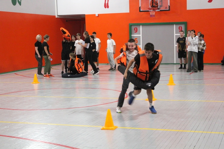 Команды должны были пройти 7 конкурсов на ловкость, скорость, хорошую физическую подготовку, смекалку и эрудированность. Первый конкурс-эстафета – «Собери рюкзак», затруднений у школьников не вызвал. А вот в «Сплаве по реке Подчерем» ребятам пришлось потрудиться: здесь нужно было надеть спасательные жилеты и «проплыть» на лодке по реке, обходя препятствия. В этом испытании ни один турист не пострадал, а вот одна из лодок не выдержала напора юношеского задора… С заданием «Разложи костёр» обе команды справились отлично. «Мозговой штурм» некоторых поставил в тупик, тут каждая команда могла максимально набрать 9 баллов, а до 5-ти ни одна не дотянула. В этапе «Отдых туриста», ребятам нужно было разложить спальный мешок: один в него забирается, а второй его застёгивает и расстёгивает потом, и уже вместе они бегут обратно, передавая эстафету следующей паре. «Экологический» конкурс подразумевал попадание мусором в корзину. К сожалению, меткостью команды особо не отличались, из возможных 24 баллов всего 6 – набрала команда «Север» (8 «б» класс). Самым сложным этапом стал конкурс «Ребусы», который поставил в тупик школьников, перешедших в старшую ступень. Не обошлось и без штрафов: за попытки смухлевать и неправильное прохождение этапов команды лишались очков.