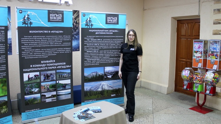 В фойе 1 этажа сотрудники парка установили стенды с информацией о национальном парке, а у стойки можно было отведать несколько сортов вкуснейших чаёв с таежными травами, полакомиться вкуснейшими блинами и коми шаньгами, угоститься сушками и яблоками.