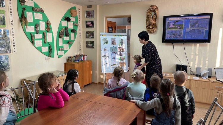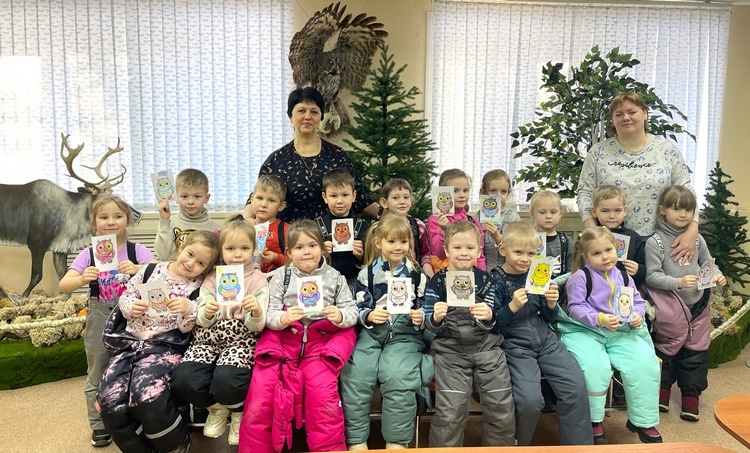 Специалисты по экологическому просвещению рассказали детворе множество интересных фактов о совах, научили ребят отличать сову от других зимующих птиц. Также в ходе урока дошкольники узнали сколько видов сов существует и чем они питаются. По мере беседы выяснили, что большинство птиц вылетают на охоту ночью, но, если ночью не наелись, то могут охотиться и днём.