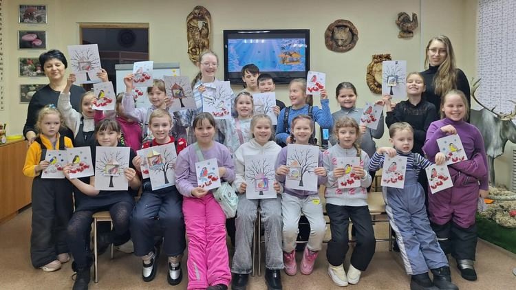 После знакомства с фотовыставкой, где представлены зимующие птицы и экскурсии по музею парка, дети посмотрели презентацию о зимующих птицах и прослушали небольшую лекцию о важности подкормки пернатых друзей, о правилах размещения и размерах кормушек. Мальчишки и девчонки с удовольствием отгадывали загадки и разгадывали ребусы о птицах. Поиграли в дидактическую игру и викторину, а также по выбору сделали поделки, которые забрали с собой.