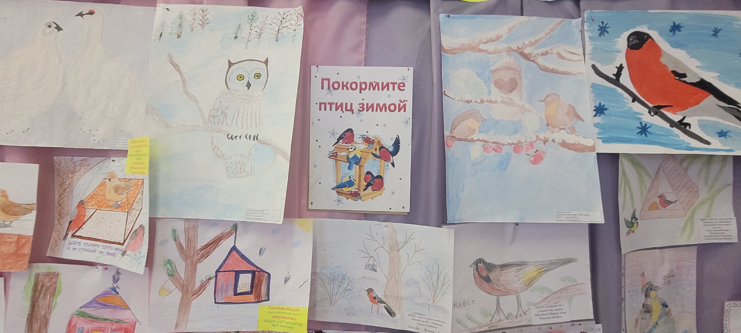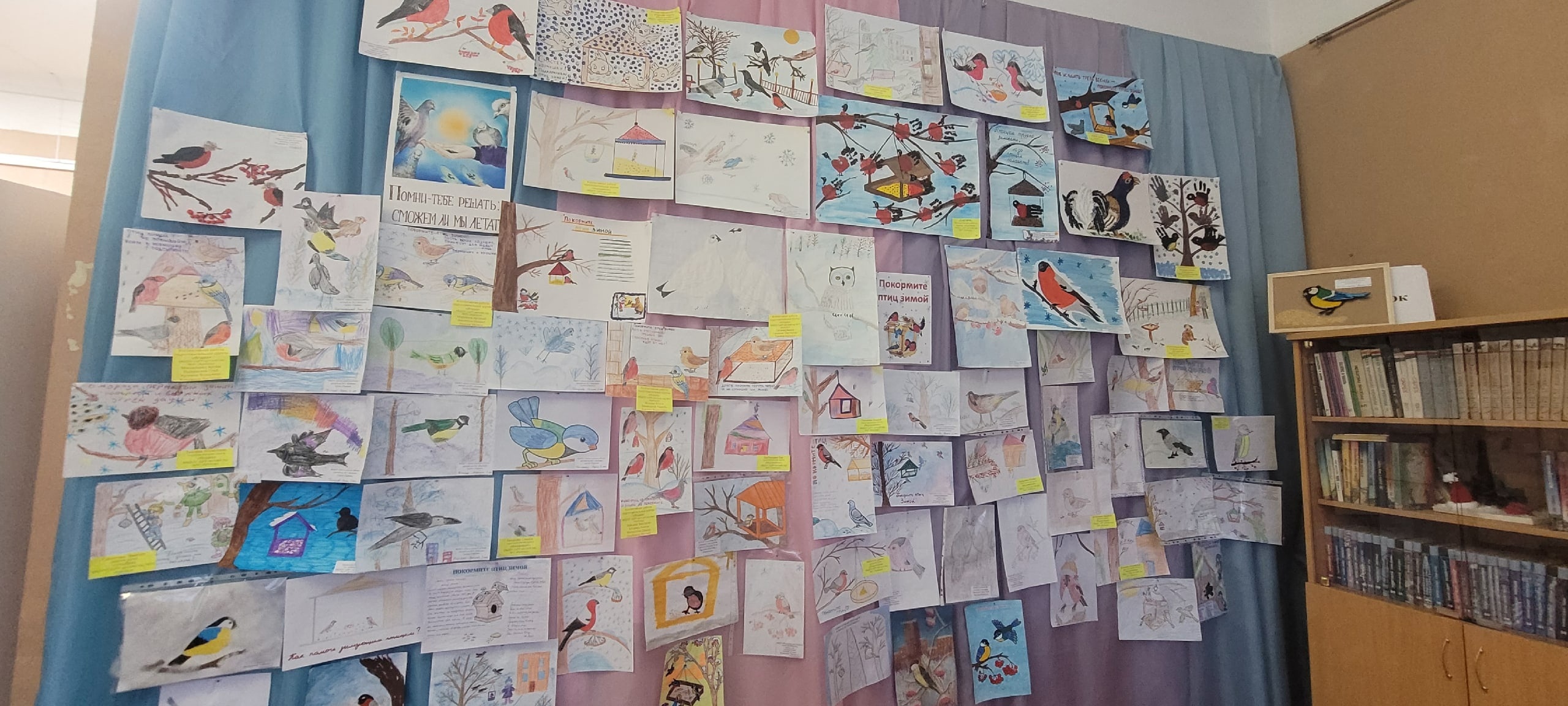 По итогам конкурса на лучший рисунок «Зимующие гости нашего города», который проходил в рамках Всероссийской эколого-культурной акции «Покормите птиц зимой», на базе Детской библиотеки г.Инты организована выставка детских рисунков.