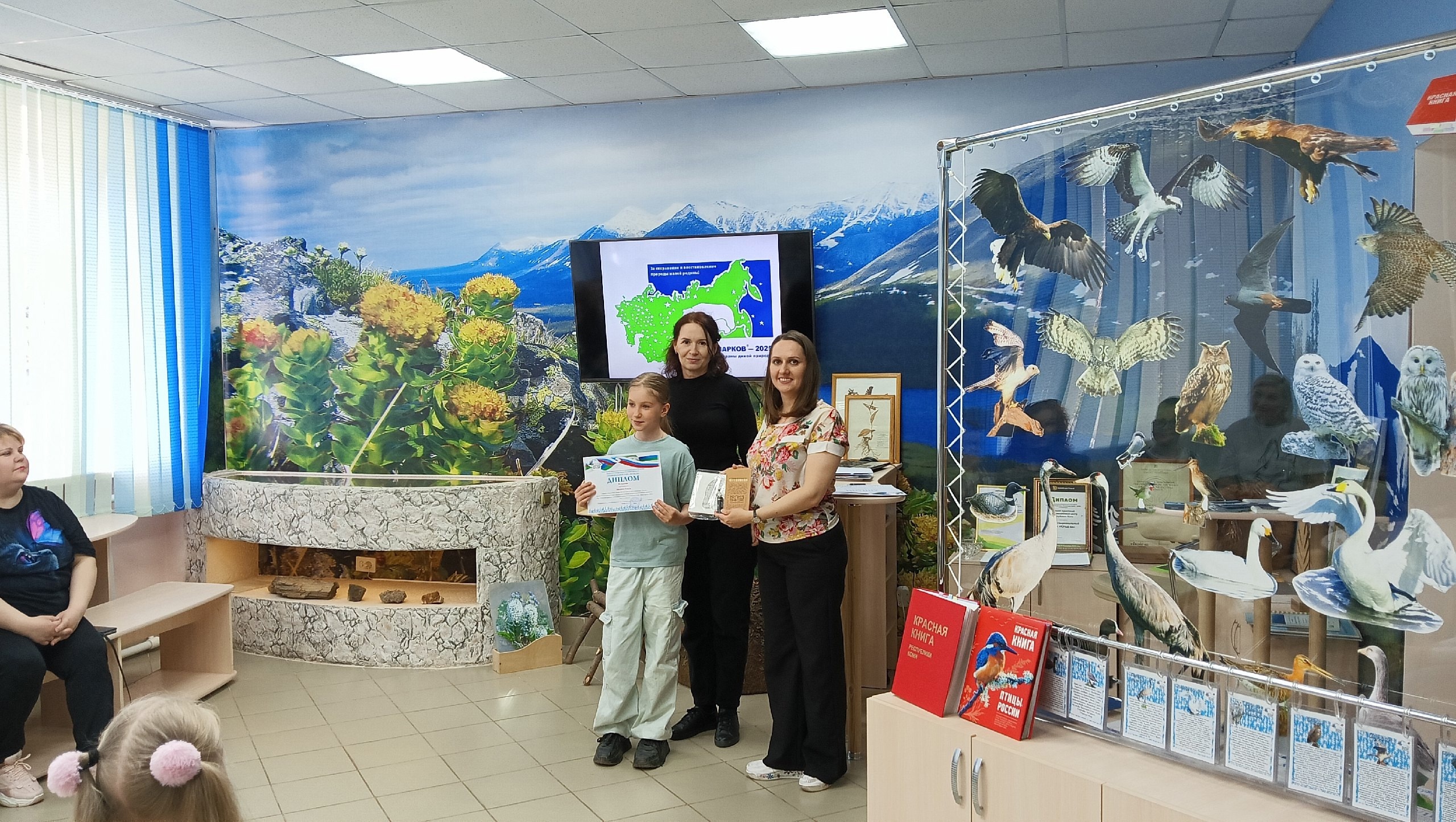 28 мая в визит-центре Печорского филиала национального парка «Югыд ва» состоялось торжественное награждение победителей и призёров конкурса рисунков «Мир заповедной природы», который проходил в рамках Международной акции «Марш парков-2025».
