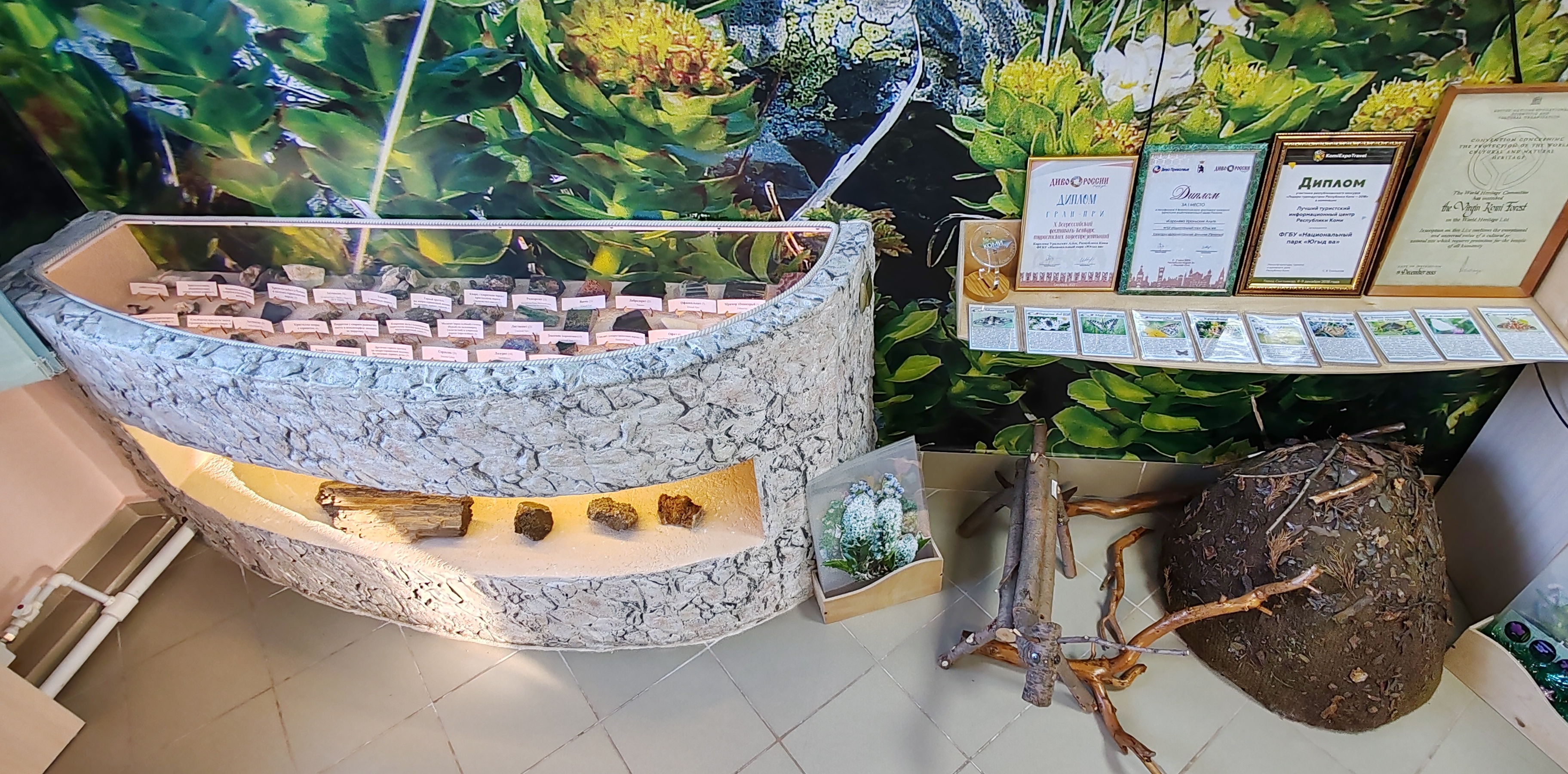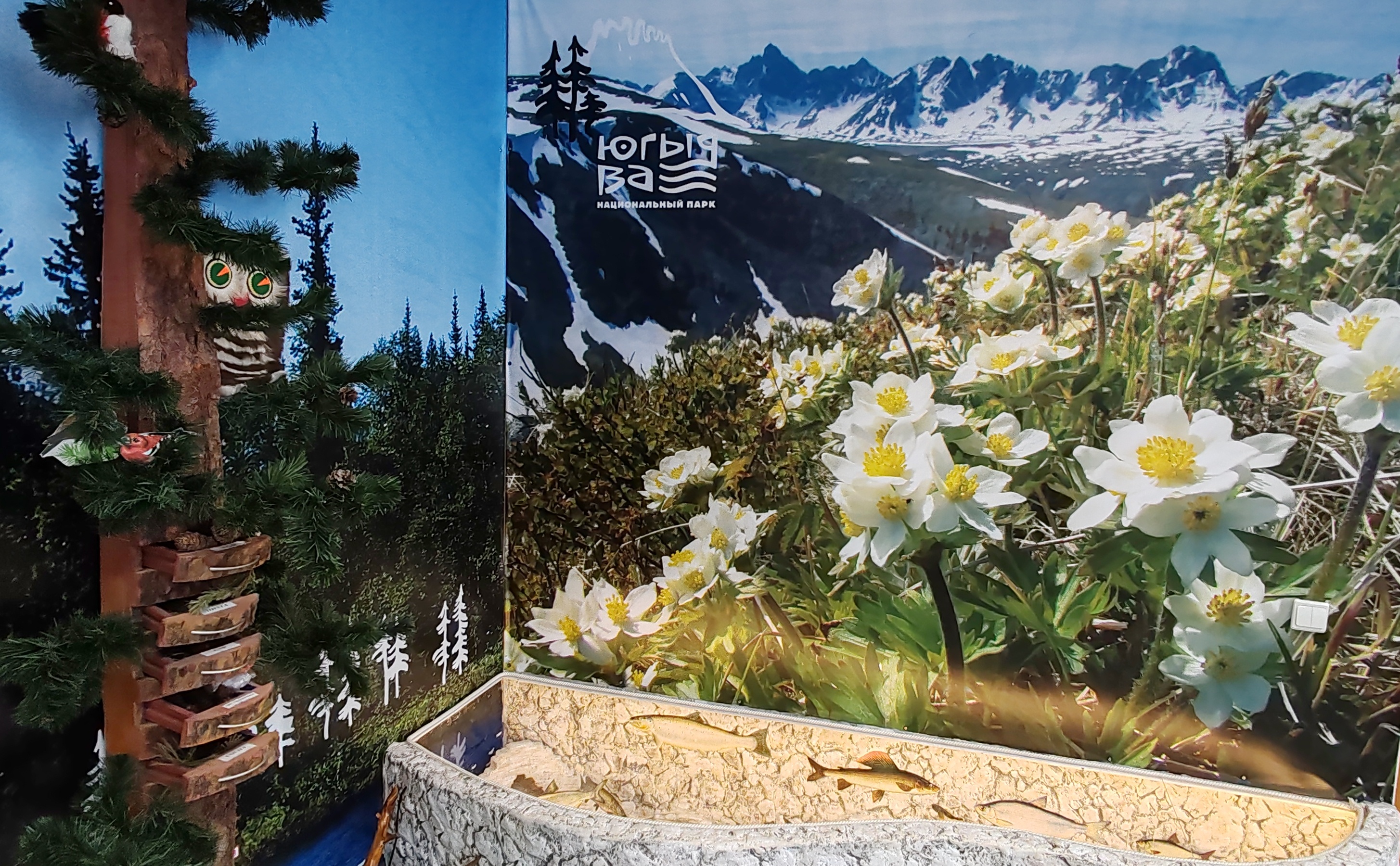 Лесные массивы парка представлены в экспозиции «Деревья». Леса национального парка относятся к единственному крупному участку девственной тайги в Европе, богатство и уникальные дары природы, которого можно увидеть в экспозициях «Дары леса» и «Цветы — цветочки». В парке более 190 видов птиц. В экспозиции «Мои пернатые друзья» представлены редкие и занесённые в красную книгу птицы национального парка, в тематических карточках описано их более 30 видов. Окунутся в безмолвный и таинственный мир рыб, «опустится» на речное дно и познакомиться с его обитателями можно вместе с экспозицией «Подводный мир». Для тех, кого завораживают молчаливые свидетели возникновения планеты, создана экспозиция «В гостях у хозяйки горы», которая говорит о разнообразии геологических проявлений на территории парка и приполярного Урала. Знание следов животных позволит не только определить зверя, но и его размер, вес и направление движения. Все это расскажет экспозиция «Я следопыт».