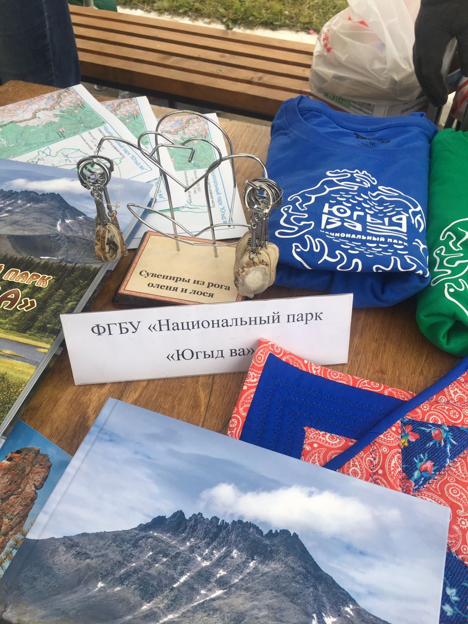 На одной из площадок – «Ими гордится Вуктыл», разместился стол с сувенирной продукцией. Новые фотопутеводители, карты, футболки, брелки с символикой парка вызвали интерес у горожан. Те, кто не успели приобрести памятные сувениры в подарок себе или знакомым могут сделать это в любом из филиалов Светлых вод.