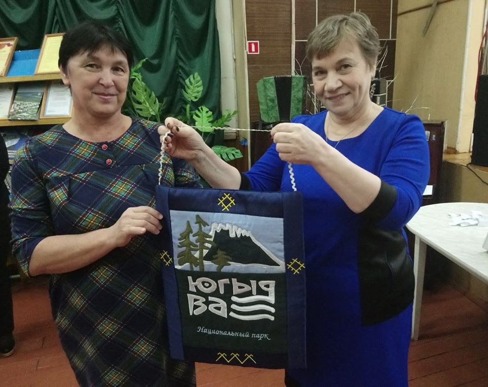 Приятным сюрпризом для нас стал подарок Ирины Мартюшевой. Местная мастерица преподнесла нам герб парка, который она выполнила в технике лоскутного шитья своими руками. Спасибо, Ирина, этот подарок займет достойное место в нашем музее.