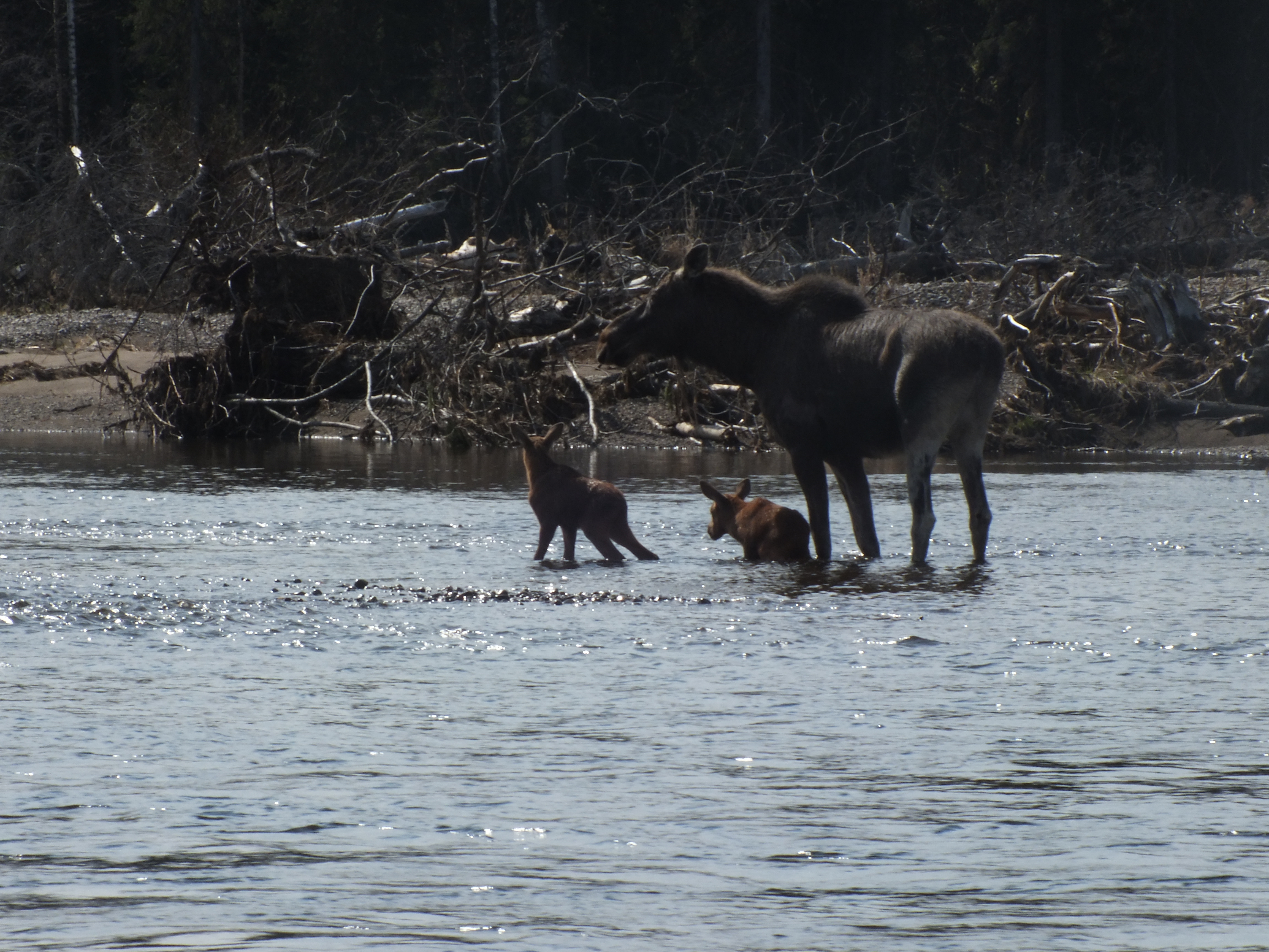 В дальнейшем медведь загнал его в воду, пытаясь взять его измором. Не спугни его инспектора, наверняка лось был бы добыт медведем. Несколькими годами ранее на Вангыре инспектора обнаружили лосиху и лосенка - их поедали четыре росомахи.