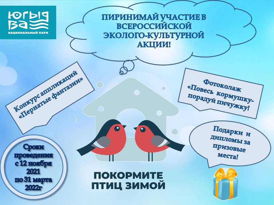 Ежегодно национальный парк «Югыд ва» принимает активное участие во Всероссийской эколого-культурной акции «Покормите птиц зимой!». Сегодня в каждом уголке нашей страны практически нет, ни одного населенного пункта, где не были установлены кормушки, спасающие жизнь огромному количеству пернатых!