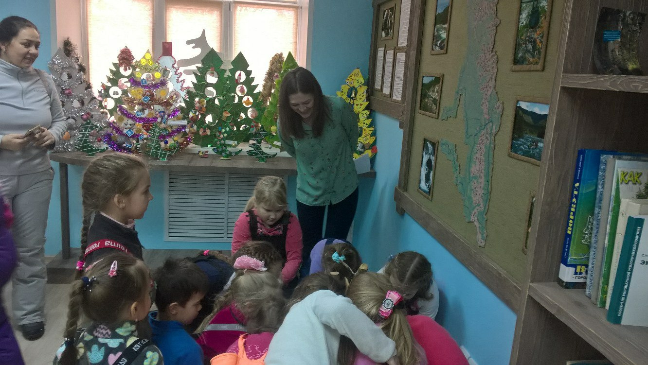 Сотрудники национального парка продемонстрировали ребятам выставку новогодних поделок «Чем нам елку заменить, чтоб живую не рубить», проводимую в рамках Всероссийской природоохранной Акции «Не рубите ель!».