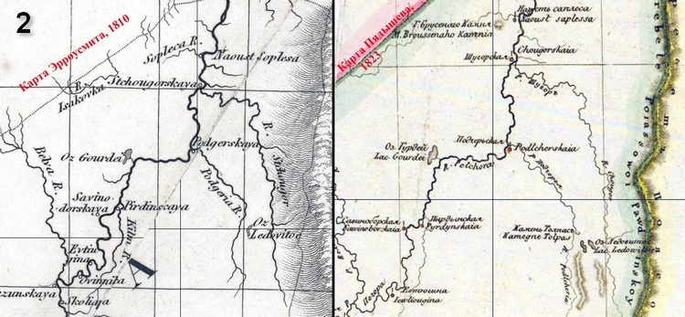 • 2 Фрагменты карт Эрроусмита и Пядышева.