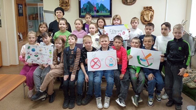 Сначала школьники ознакомились с рисунками выставки «Будь природе другом!», в музее они заинтересовались доисторическими окаменелостями, измерили свой рост у ростомера «Животных», рассмотрели птиц и рыб, угадали следы животных и заглянули в зал «Старины и быта».