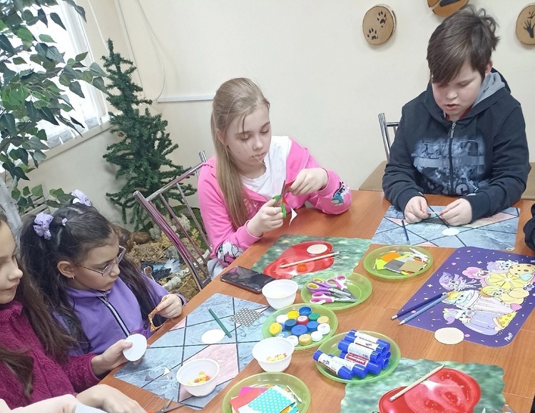 Затем все вместе посмотрели мультфильм «Мальчик и Земля» после которого для участников мероприятия прошёл мастер-класс по изготовлению поделки из вторсырья «Волчок». Для поделки дети использовали пластиковые крышки, ватные палочки и остатки картона.