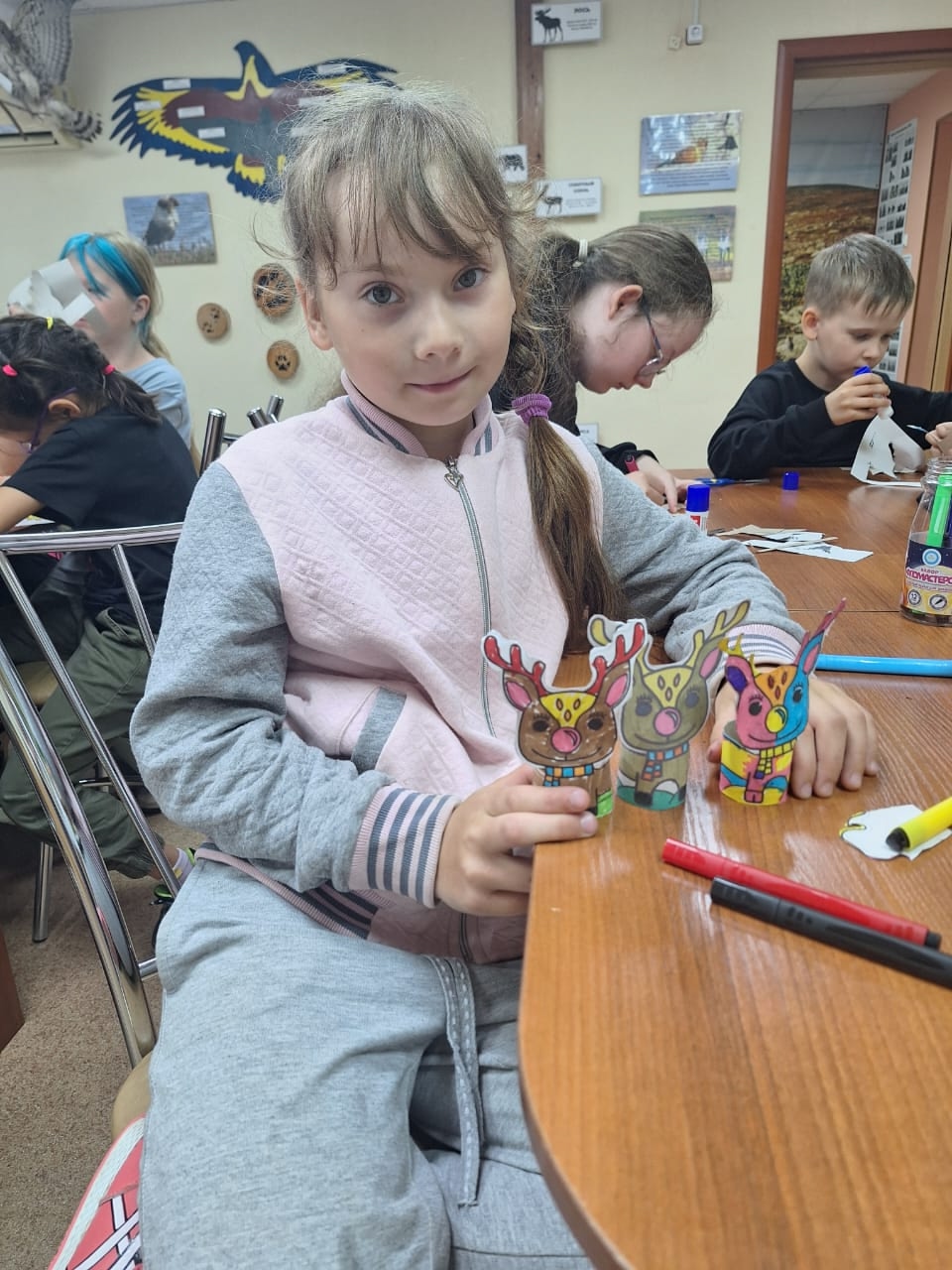 По окончанию экологического урока вместе с ребятами изготовили поделку из бумаги. Дети с удовольствием раскрашивали своих оленей и даже соревновались, кто больше успеет сделать.